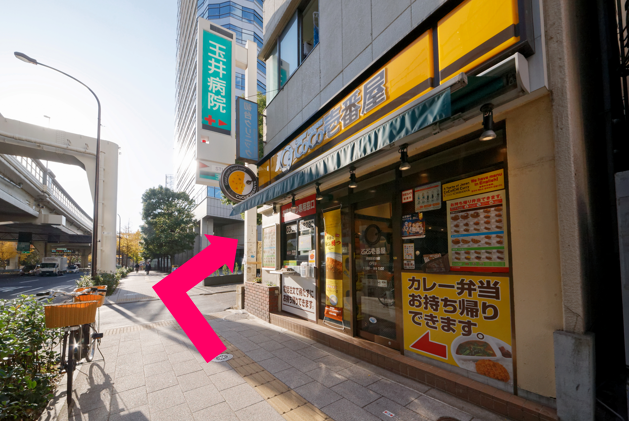 ■カレー店を右に曲がります。50M程進むと右側に当院がございます。